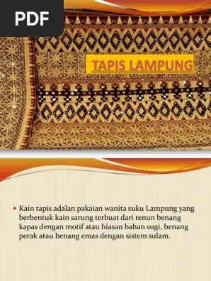 Kondisi ini menguntungkan indonesia, karena banyak karakteristik kebudayaan yang. kain tapis adalah pakaian wanita suku lampung yang berbentuk kain sarung yang terbuat dari tenun benang kapas dengan motif atau hiasan bahan sugi, benang perak dan benang emas. Bagi masyarakat lampung pesisir (beradat saibatin) menggunakan inuh untuk aktivitas adat istiadatnya. Soal tematik kelas 3 sd tema 7 subtema 2 perkembangan teknologi produksi sandang. Warna yang dominan pada kain ulos yaitu warna hitam, merah, kuning, dan putih dengan hiasan benang perak serta emas.
