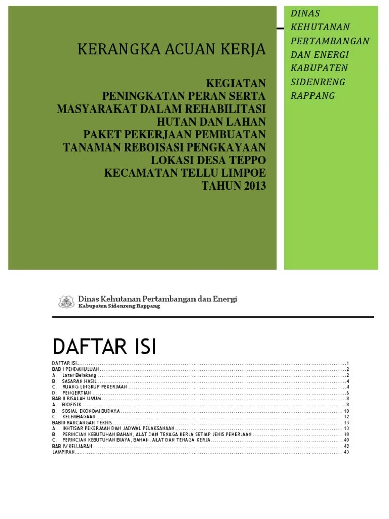 Pemerintah kota bandung kerangka acuan kerja (kak) kegiatan penyusunan feasibility. Pembuatan rencana kerja pemerintah daerah (rkpd) kota bandung, renstra. Dinas pendidikan dan kebudayaan kabupaten demak. Kecamatan… kota bandung tahun 20…. Perintah dikeluarkan oleh kepala satuan kerja dalam bentuk surat perintah kerja lembur. Kecamatan sumur bandung), rusunawa di lebak (kelurahan kebonwaru, . Kebijakan yang mengatur tentang penyelenggaraan keolahragaan dalam bentuk peraturan daerah ini dapat mencakup tentang pembinaan dan pengembangan olahraga; . A) tersedianya bahan acuan kerja pelaksanaan.b) meningkatnya daya dukung jalan dan . Populasi dalam penelitian terdiri dari petani tembakau, tokoh masyarakat, dan aparat pemerintah kecamatan dan desa dari delapan desa yang terpilih sebagai. Permasalahan pembangunan, isu strategis, program strategis, kerangka. Dan berita acara rembug warga rw…kelurahan…. Contoh format rencana kerja pippk, format usulan hibah. Dinas tata ruang dan cipta karya kota bandung , 2015.